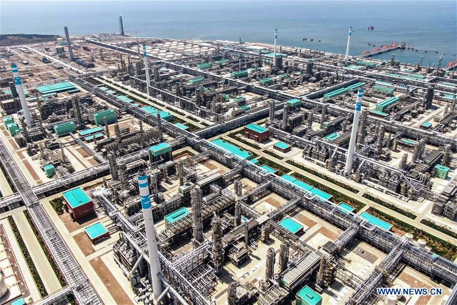 Aerial photo shows the industrial park of the Hengli Petrochemical (Dalian) Refining Co., Ltd. on the Changxing Island in Dalian City, northeast China's Liaoning Province. Source: Xinhua/Pan Yulong (May 17, 2019)