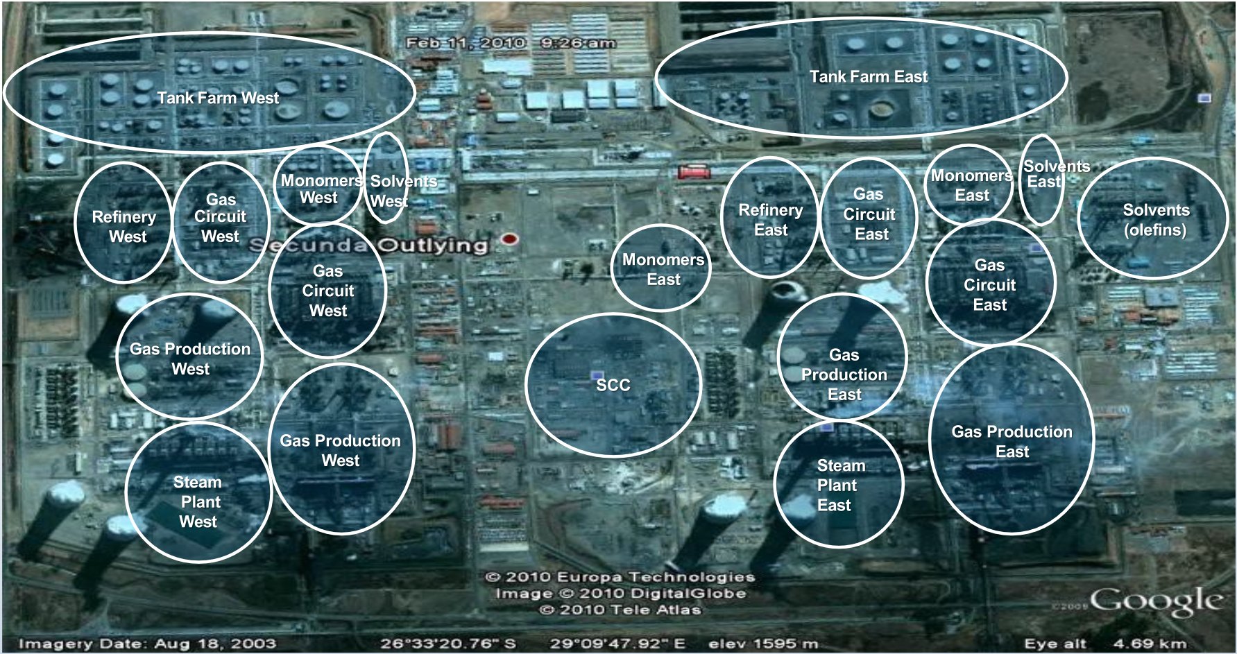 The Secunda site covers approximately 850m x 1200m and includes: